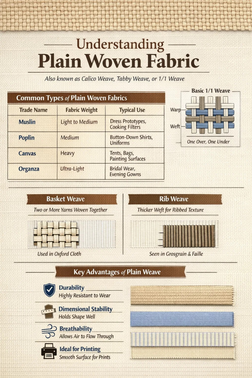 Khi chọn một dự án, hãy nhớ rằng mặc dù tên của nó có thể là "đơn giản" nhưng lại có nhiều kiểu hoàn thiện khác nhau—từ kết cấu thô, không tẩy trắng của vải hoa trước sự sang trọng tuyệt đối của voan —làm cho nó dễ thích nghi nhất vải dệt trên thế giới.